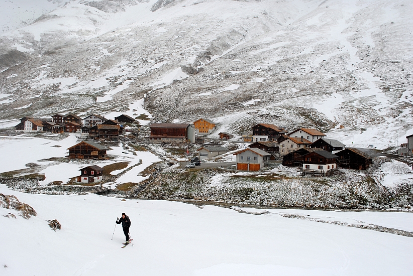 | Routenbeschreibung: | Start im höchstgelegenem, dauerhaft bewohnten Dorf in den Alpen namens Juf. Vom Parkplatz am Ende des Dorfes über eine Brücke den Bach queren und dann rechts des Bachbettes entlang und über den breiten Nordostrücken zum Gipfel. Abfahrt wie Aufstieg. |