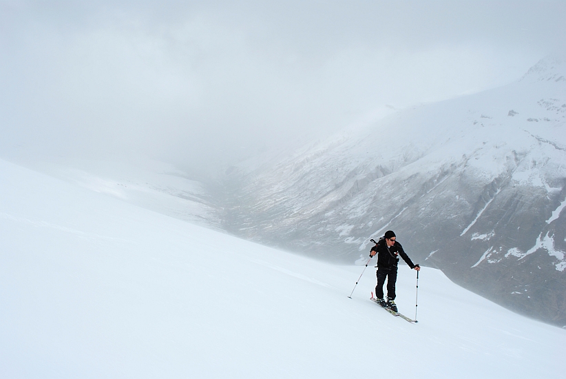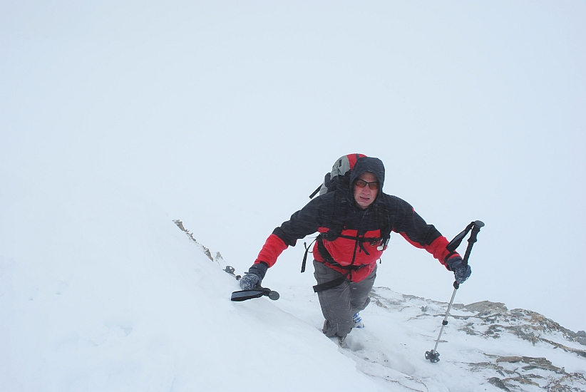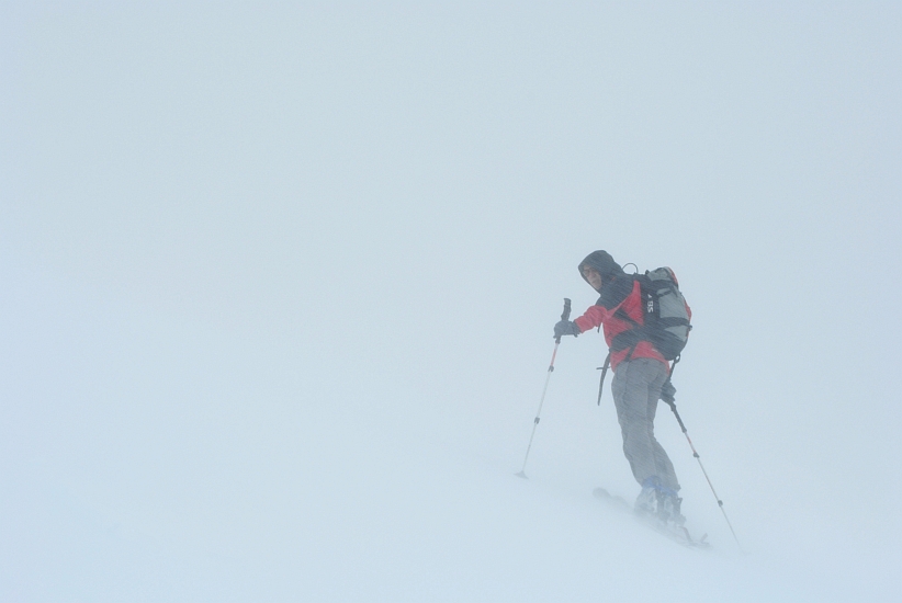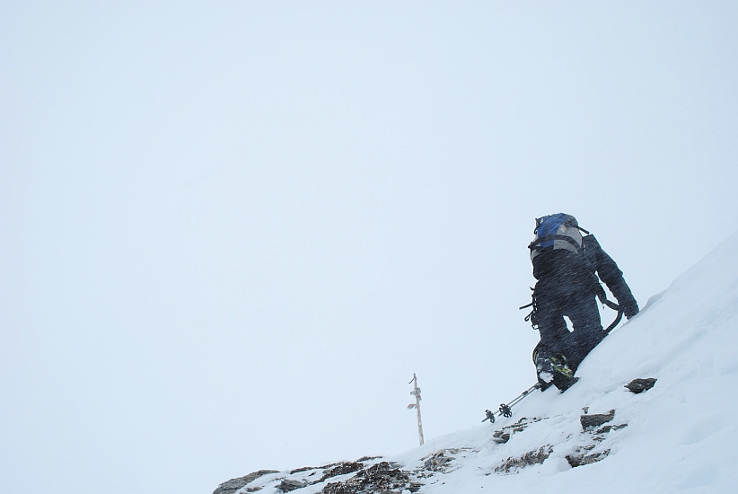 Mit zunehmender Höhe blies einem der orkanartige Föhn beinahe von den Brettern, auch die Sicht wurde immer schlechter