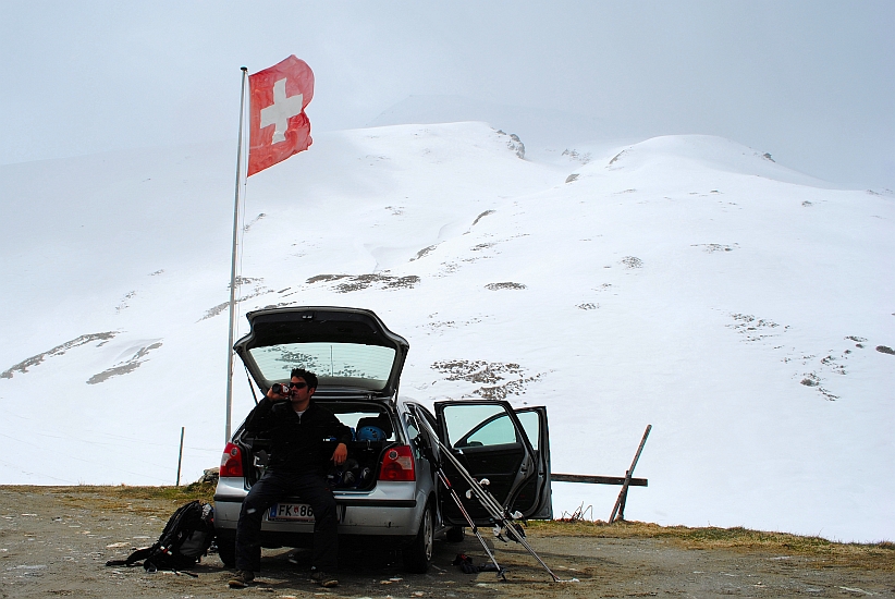 Die Schweizer Familie, welche es sich schon zu Beginn unseres Aufstiegs am Parkplatz gemütlich machte,