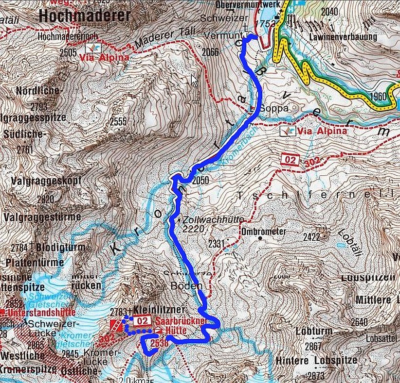 Mit Übernachtung auf der Saarbrückner Hütte soll es am nächsten Tag auf den Großlitzner und das Grosse Seehorn gehen