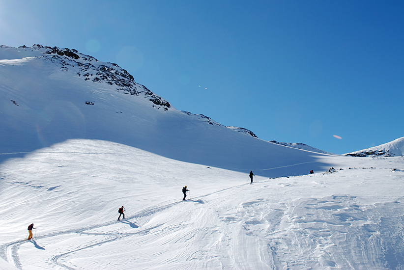 Aufgrund der guten Verhältnisse war heute ein Aufstieg mit den Ski möglich