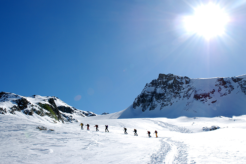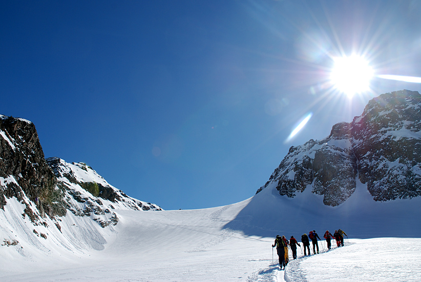 Im Gänsemarsch gehts den Klostertaler Gletscher hinauf