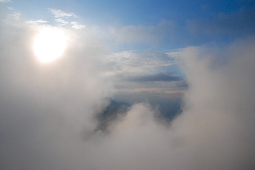 Im Westen kämpft die Sonne noch mit der Hangbewölkung...