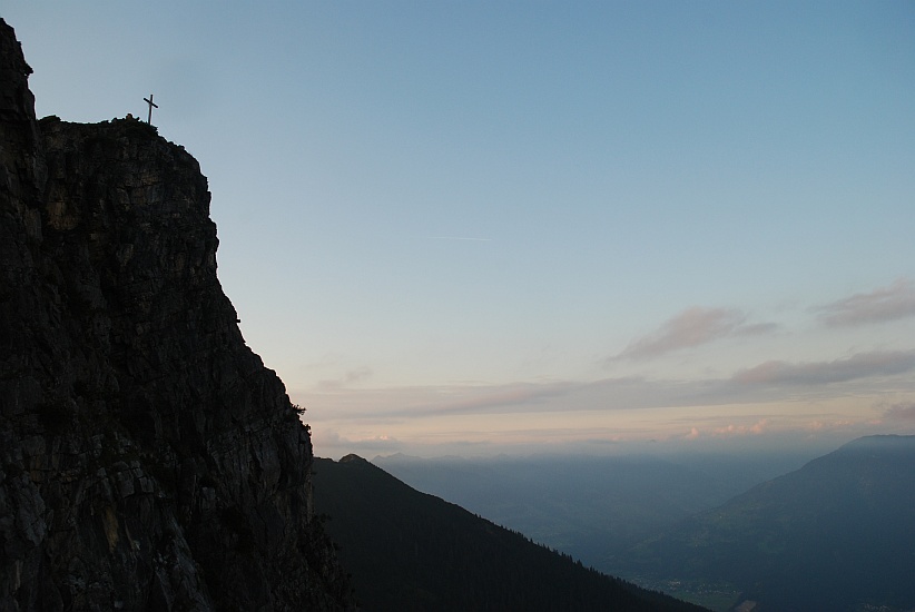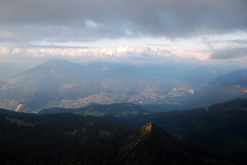 Letzte Sonnenstrahlen am Taleukopf, im Hintergrund Bludenz