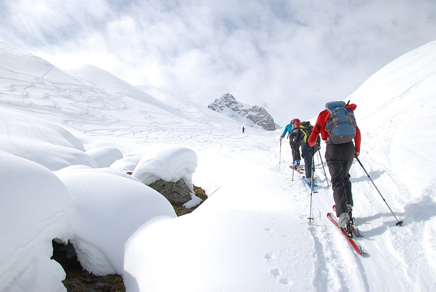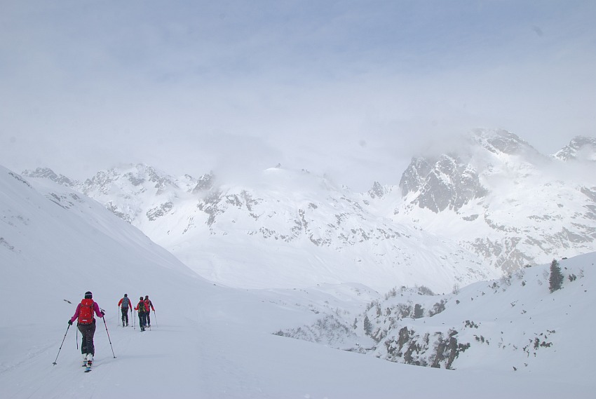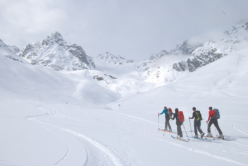 Start zur ersten Tour der diesjährigen Silvrettawoche vom Gabelhaus Richtung Saarbrückner Hütte