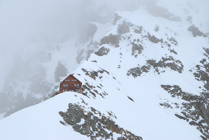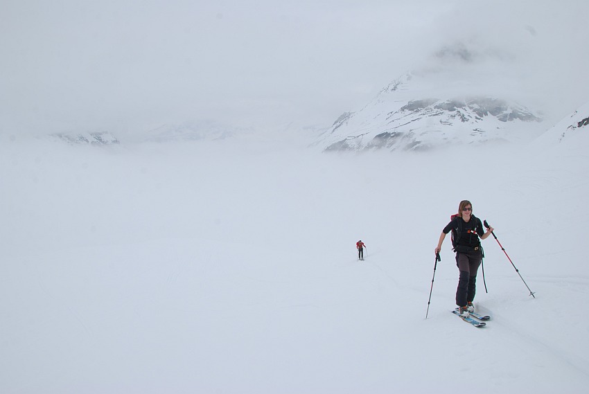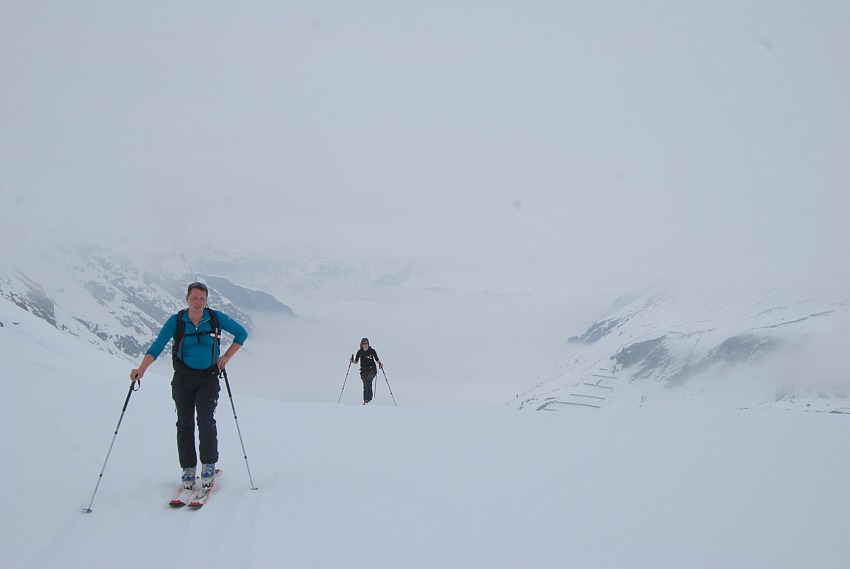 gings dann bei null Sicht und leichtem Schneefall wieder zurück zur Hütte