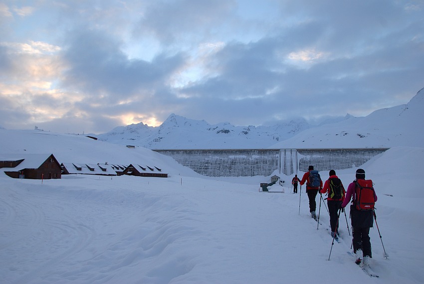Unterhalb der mächtigen Staumauer des Silvrettastausees gehts zu Beginn hinauf auf die Staumauer