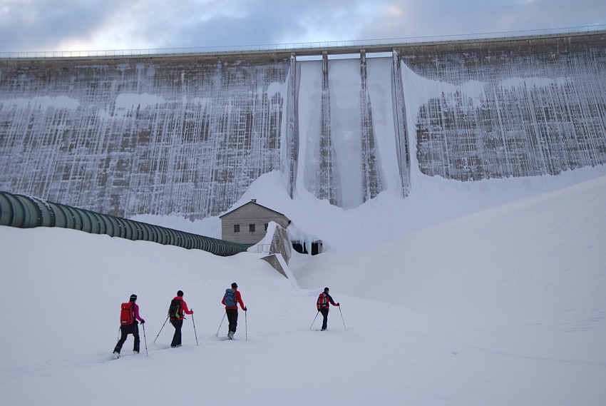 Von der Staumauer gehts hinab zum zugefrorenen See