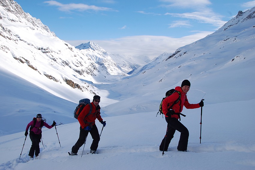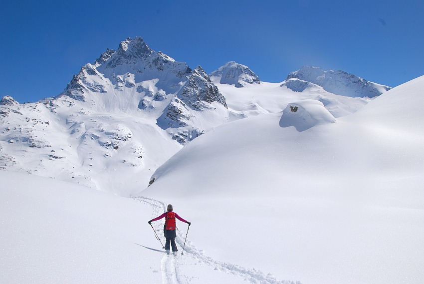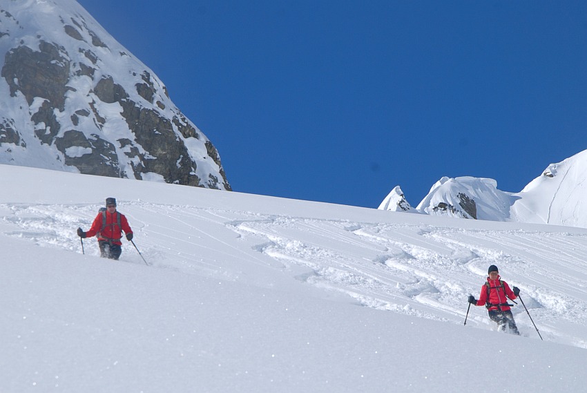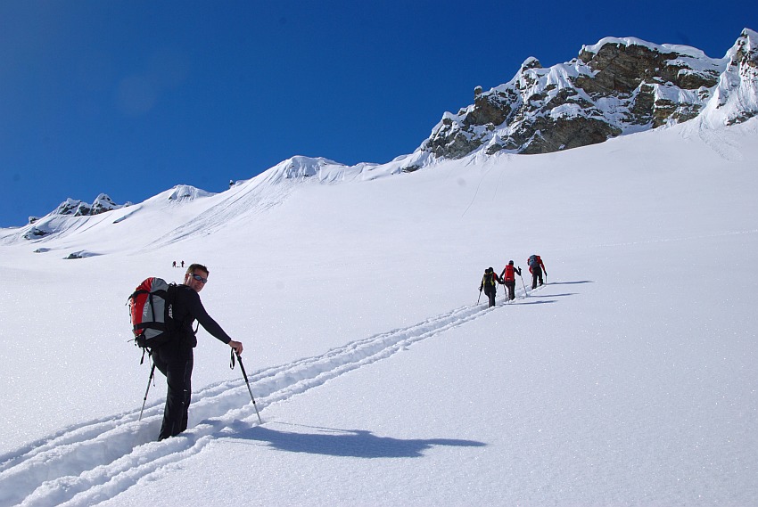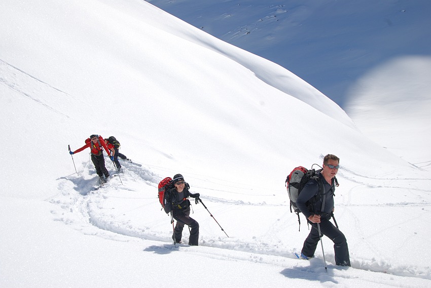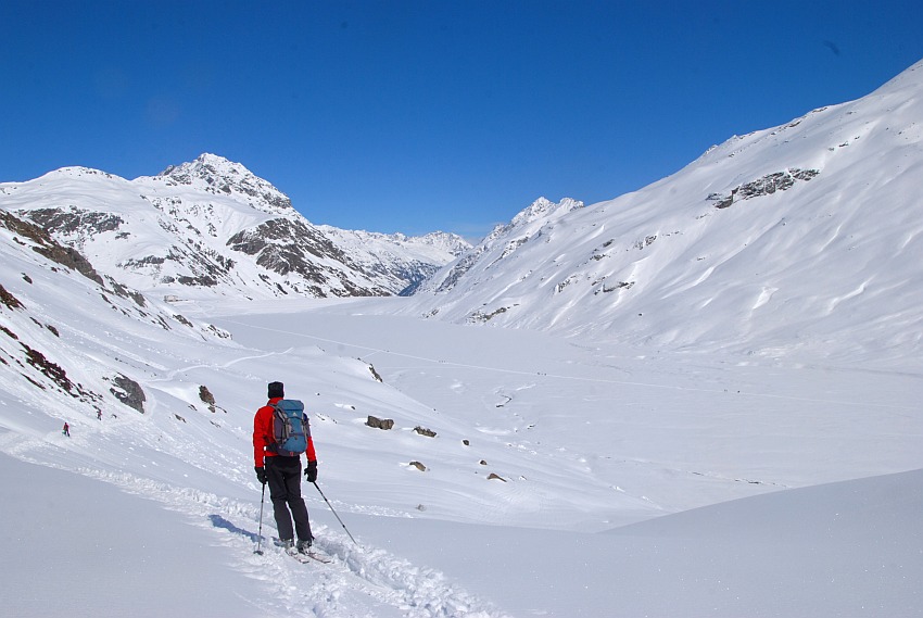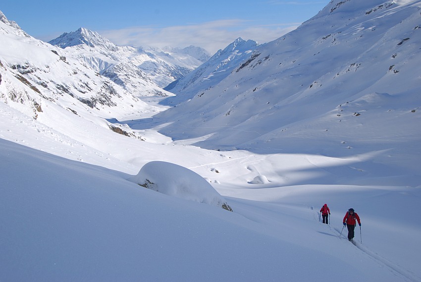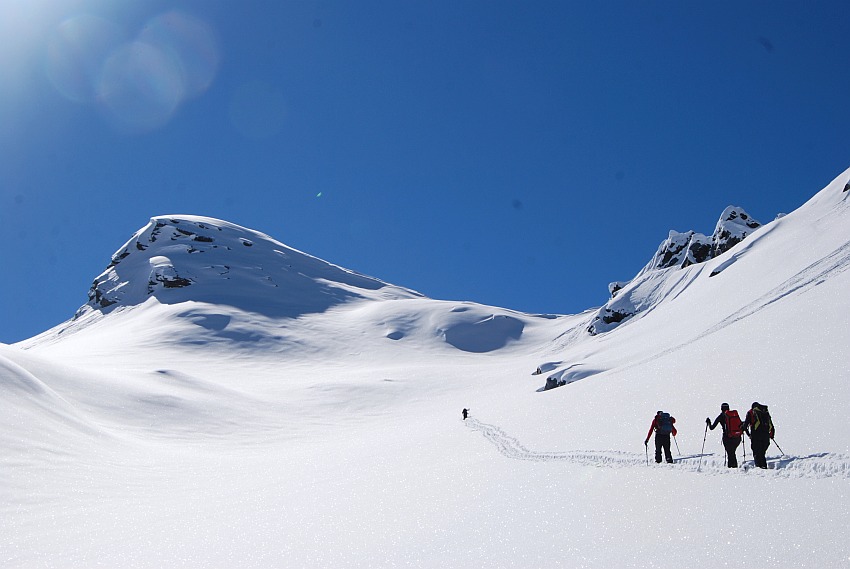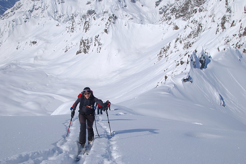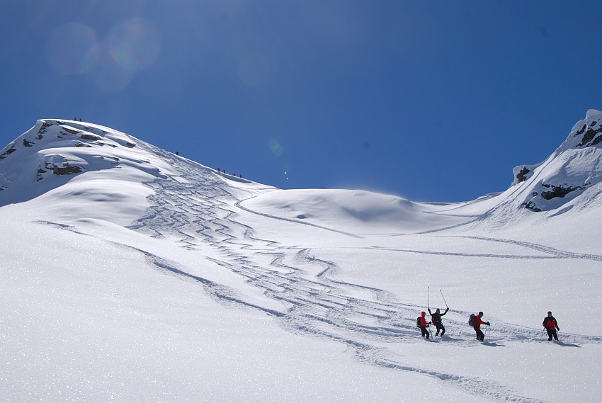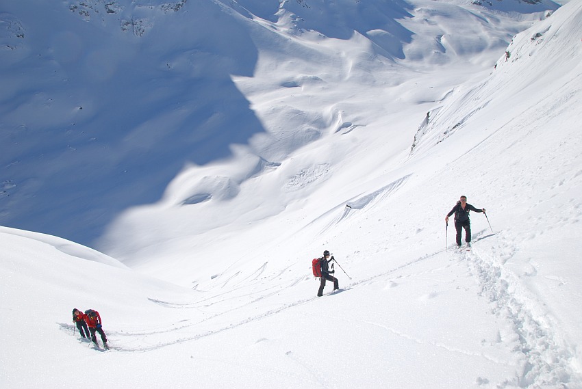 Über die herrlichen Hänge des oberen Verhupftälis gehts hinauf zum Glöttergletscher