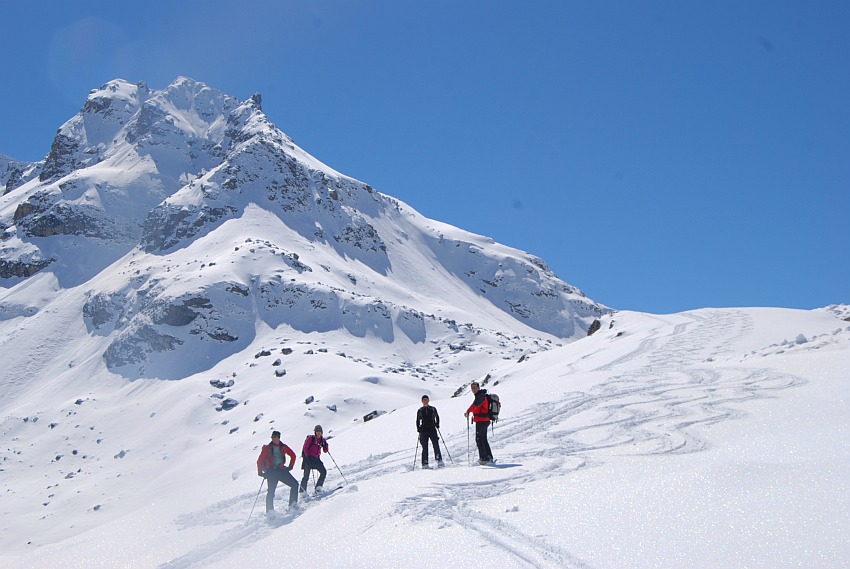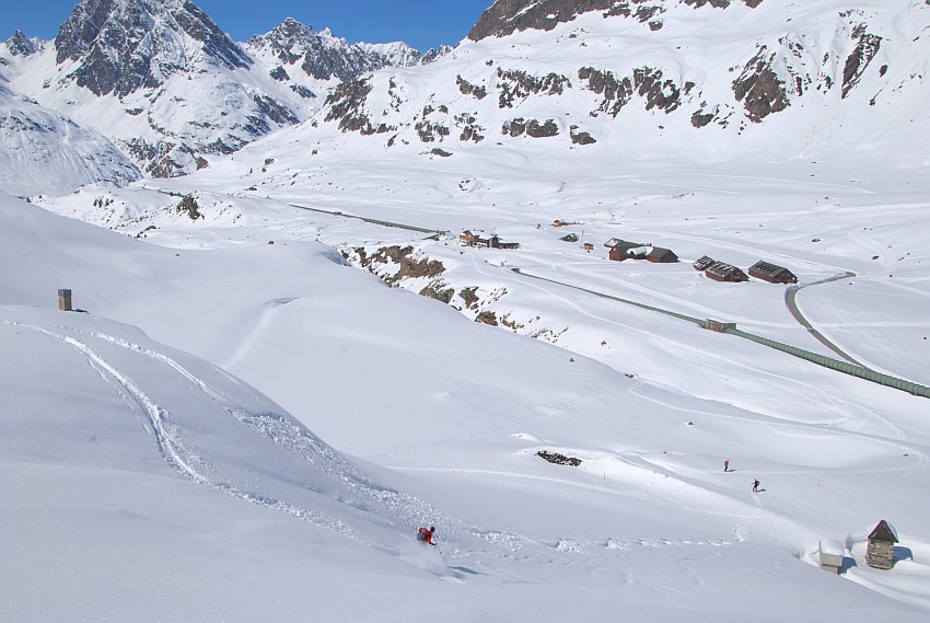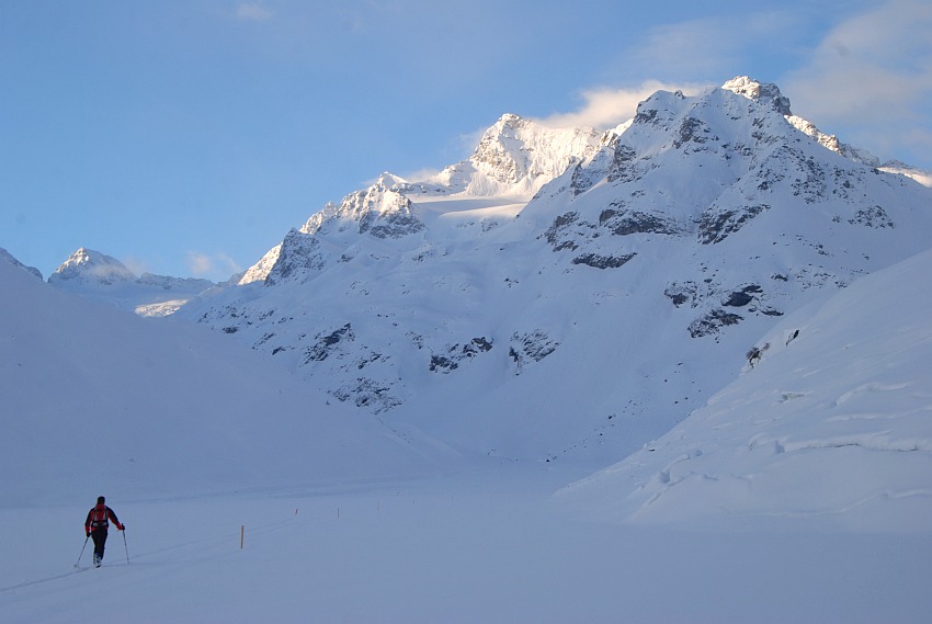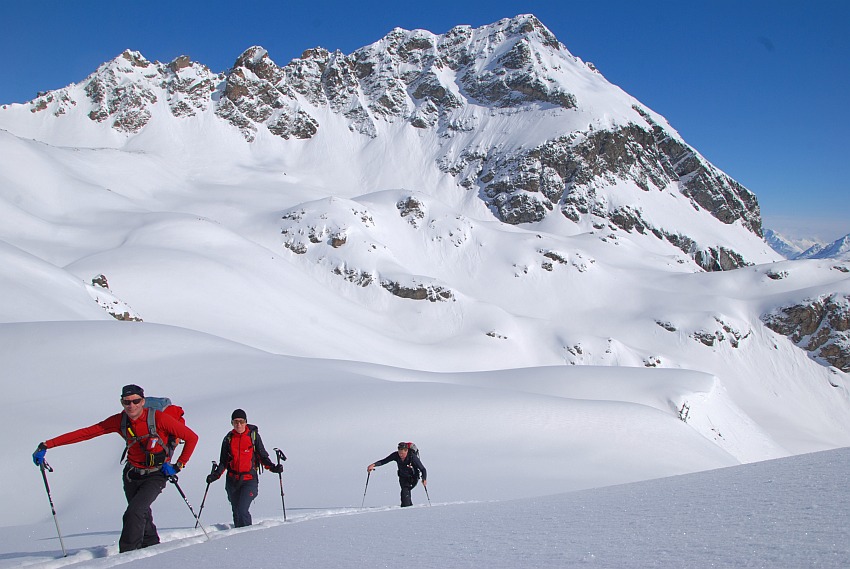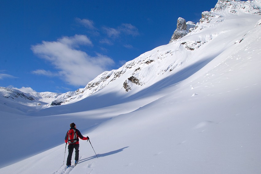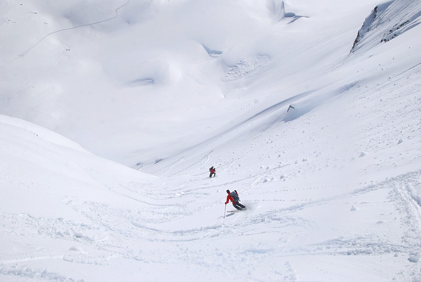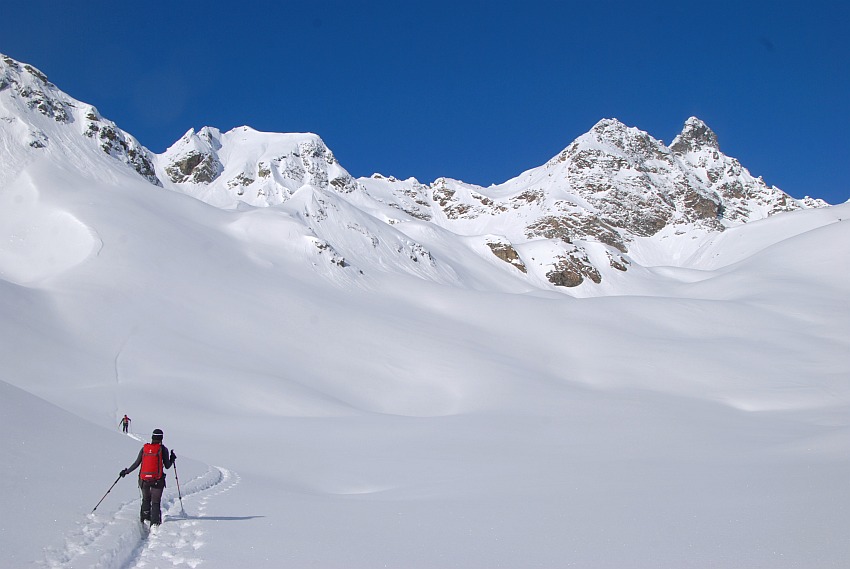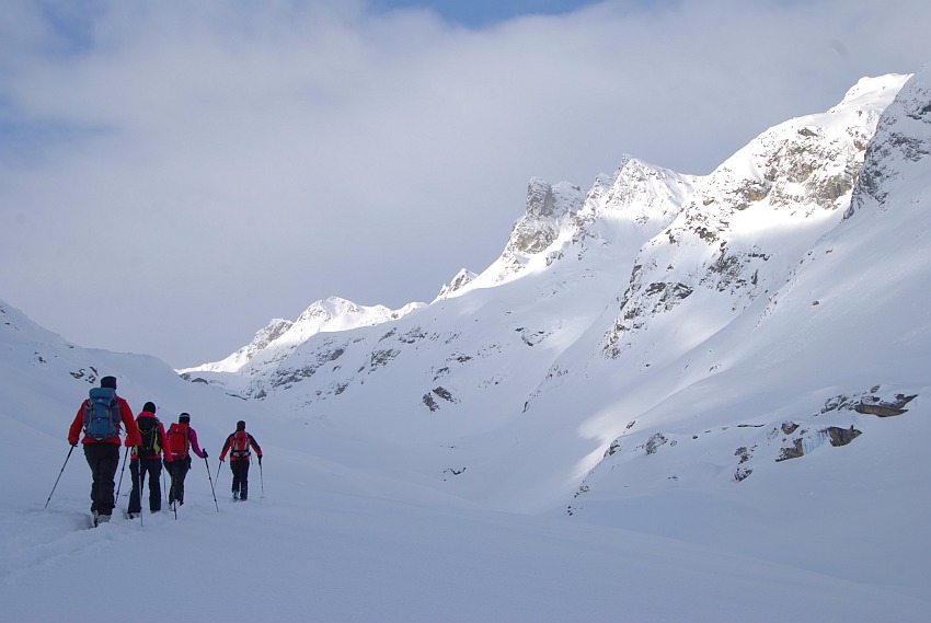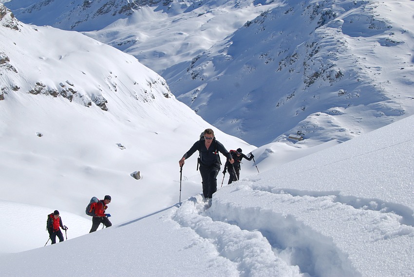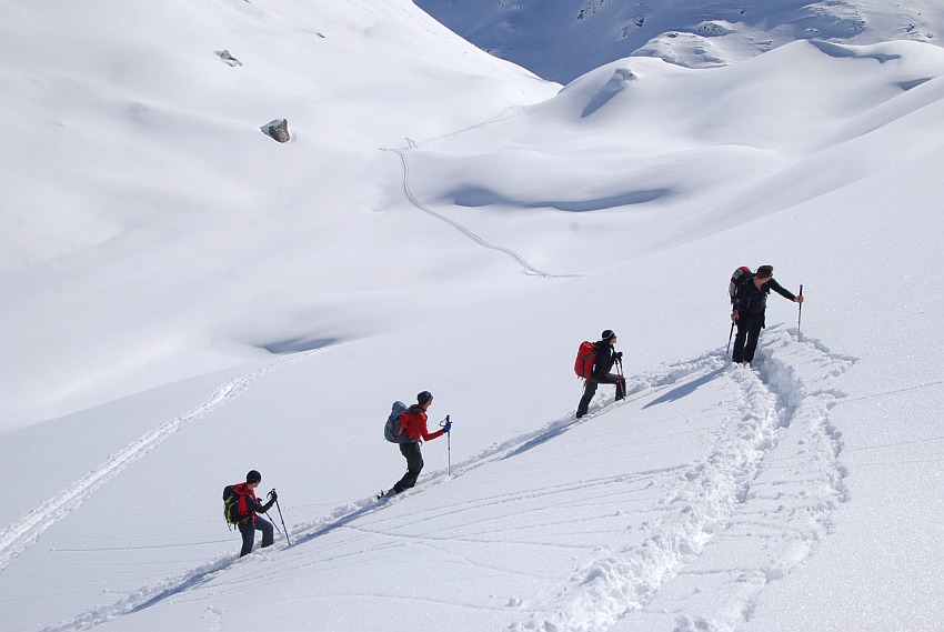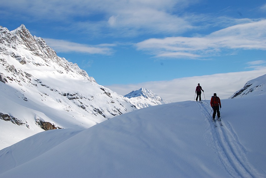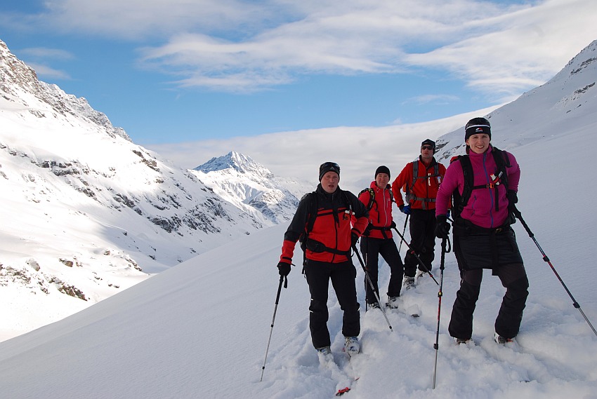 Über die herrlichen Hänge des oberen Verhupftälis gehts hinauf zum Glöttergletscher