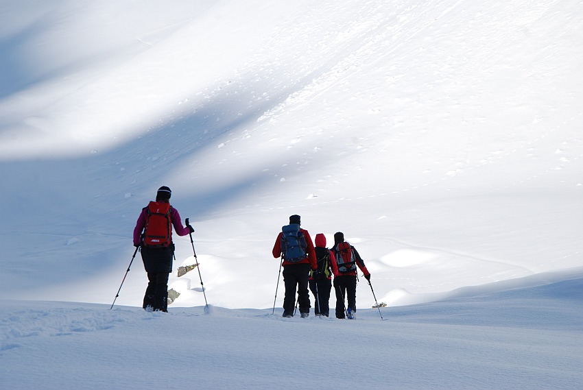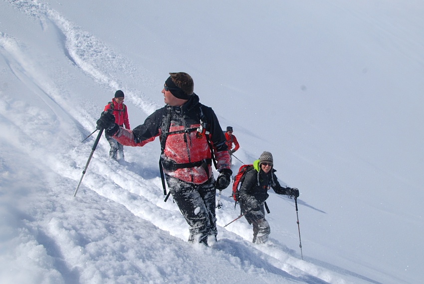 Einstimmig erklären wir den Hang für sicher, nachdem der Neuschnee kaum verblasen wurde