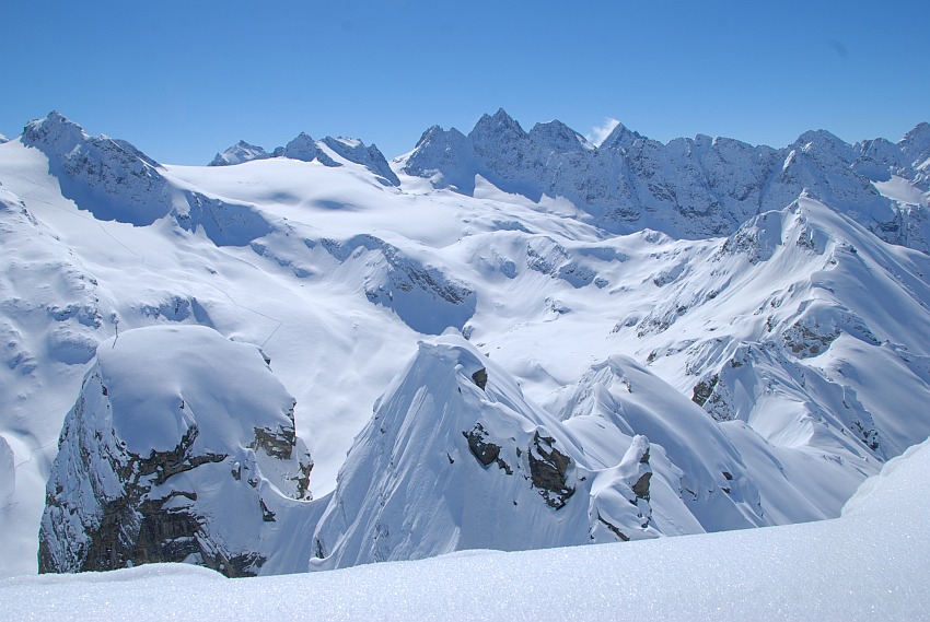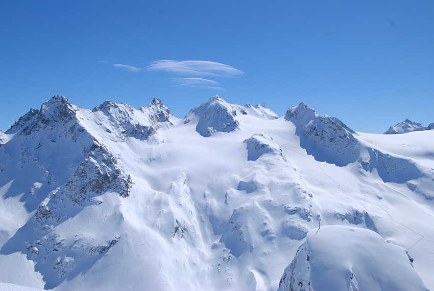 Herrlicher Blick hinüber zu den noch jungfräulichen Hängen unterhalb der Schneeglocke
