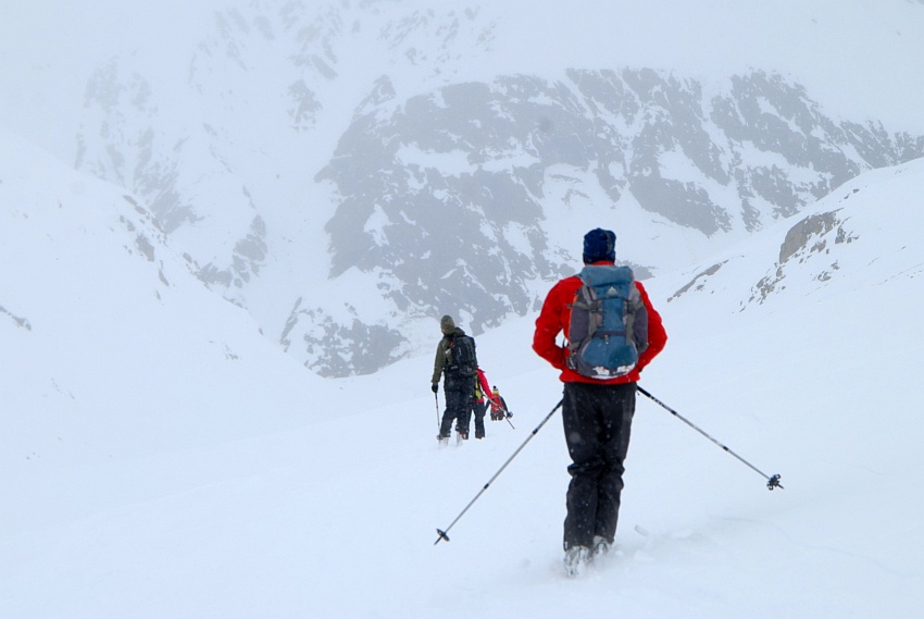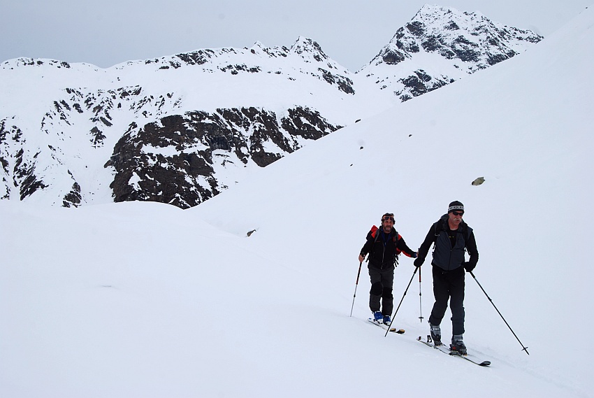...und so machten wir uns bei diffuser Sicht und durch üblen Harsch wieder zurück zum Ausgangspunkt