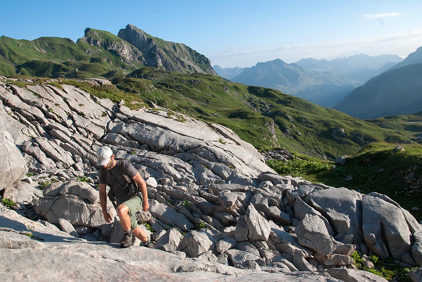 Durch Fels und Gras gehts weiter bergab