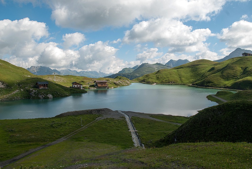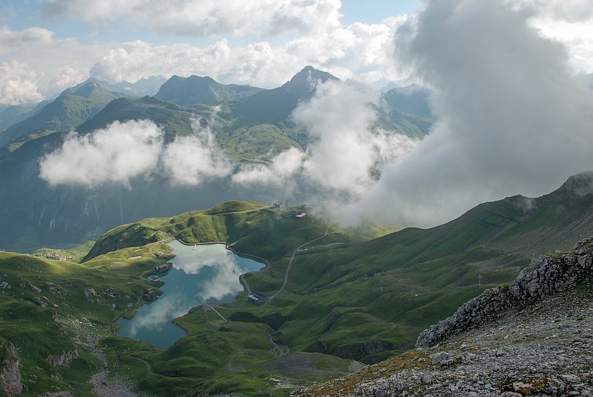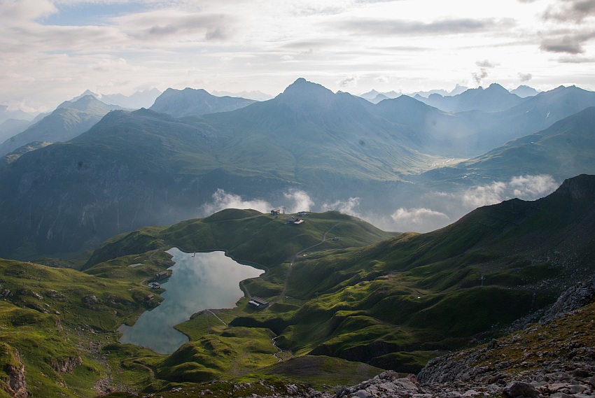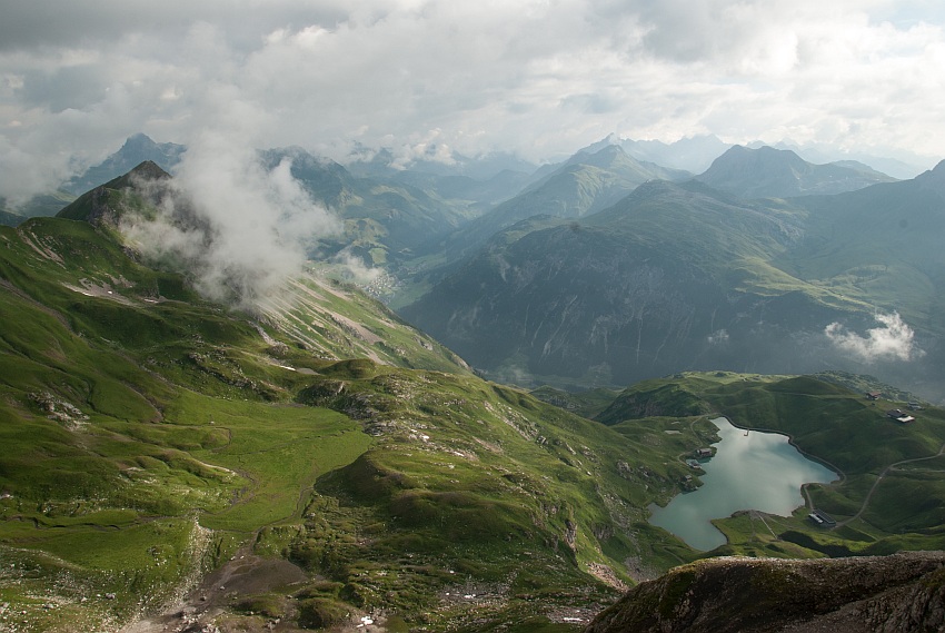 Herrlicher Blick hinab auf den See mit den Wösterspitzen und dem Rüfikopf im Hintergrund
