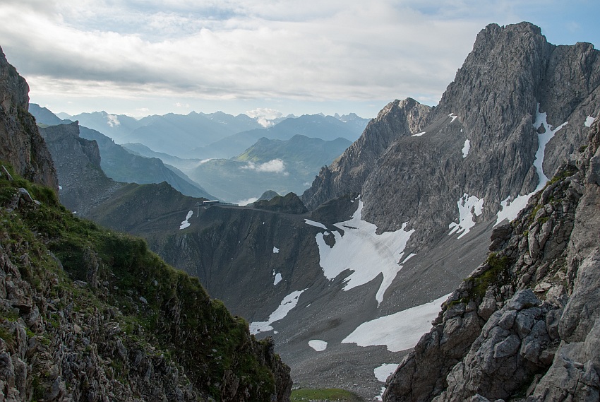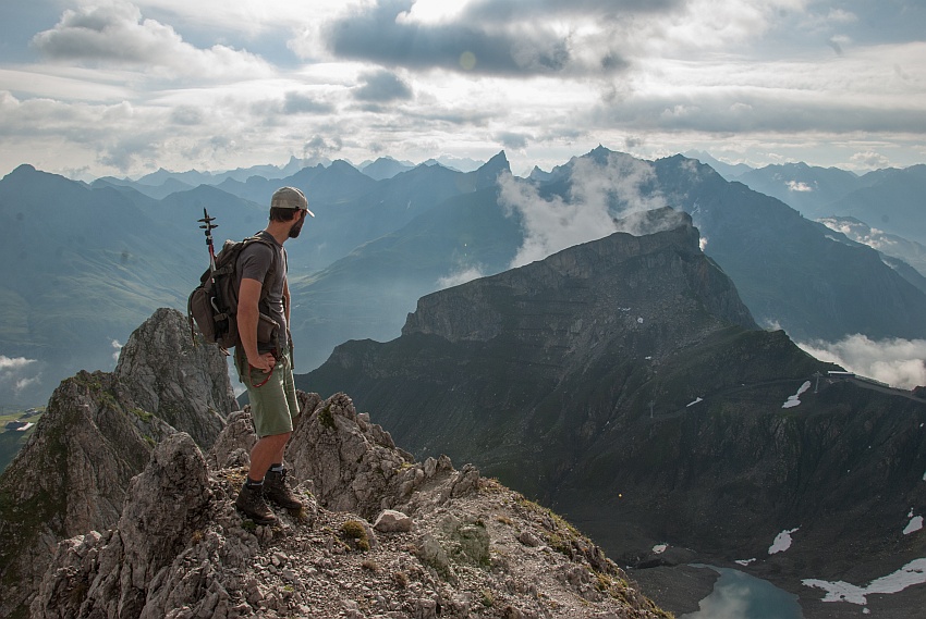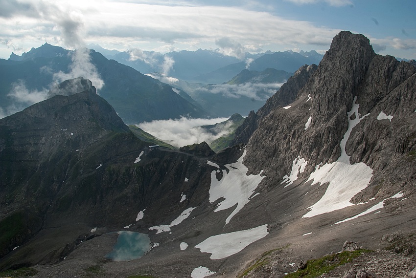 Ein schöner Grat zieht hinüber zur Unteren bzw. Großen Wildgrubenspitze, der höchste Gipfel des Lechquellengebirges