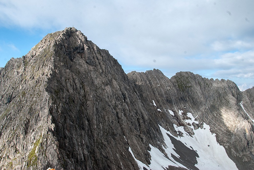 Nach kurzer Kletterei erreichen wir den Gipfelgrat...