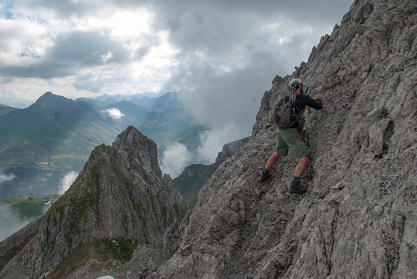 Vom Joch durfte dann ein wenig geklettert werden, wobei nur kurze Stellen im II. Grat zu absolvieren sind
