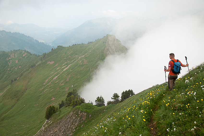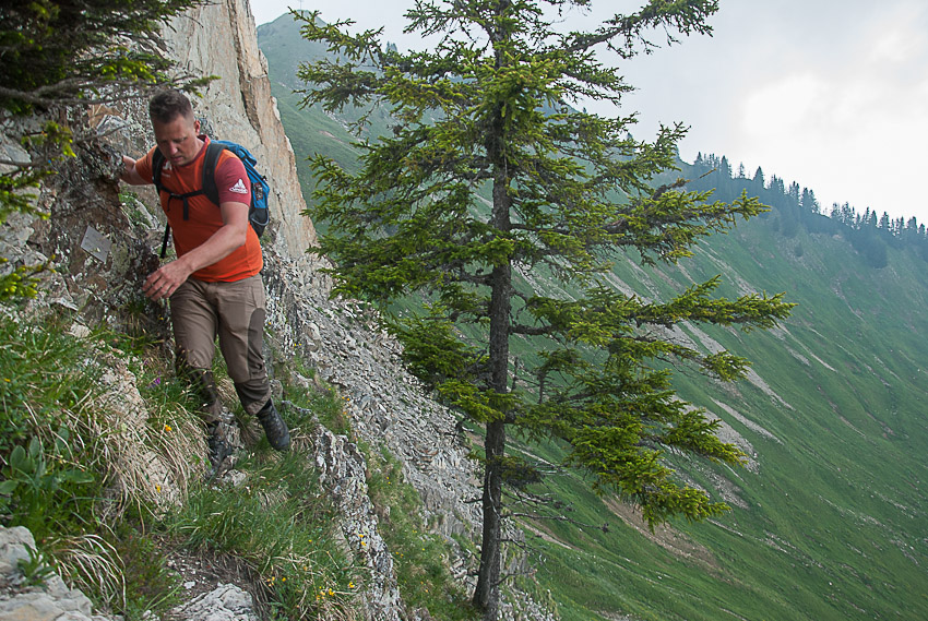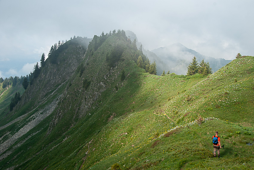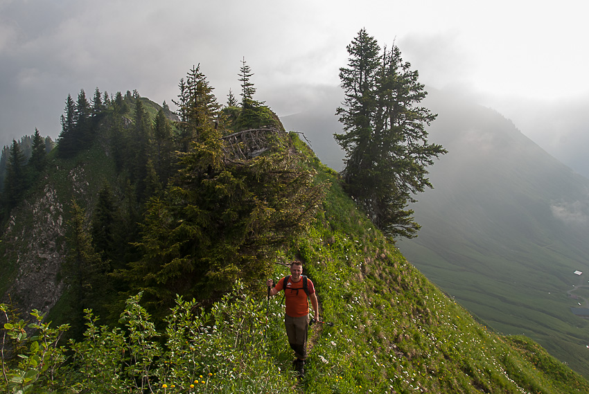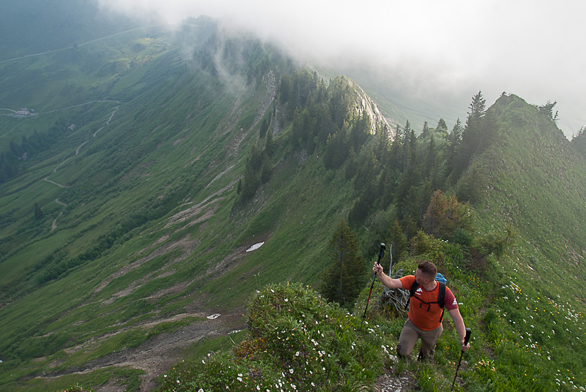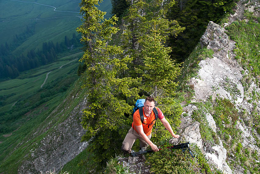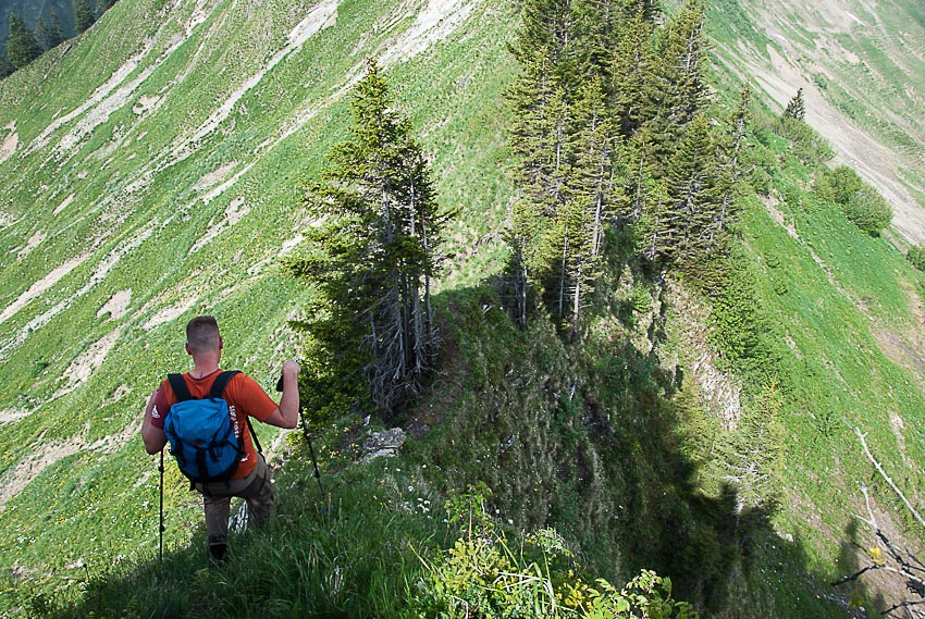 Steiler Abstieg vom Pfrondhorn