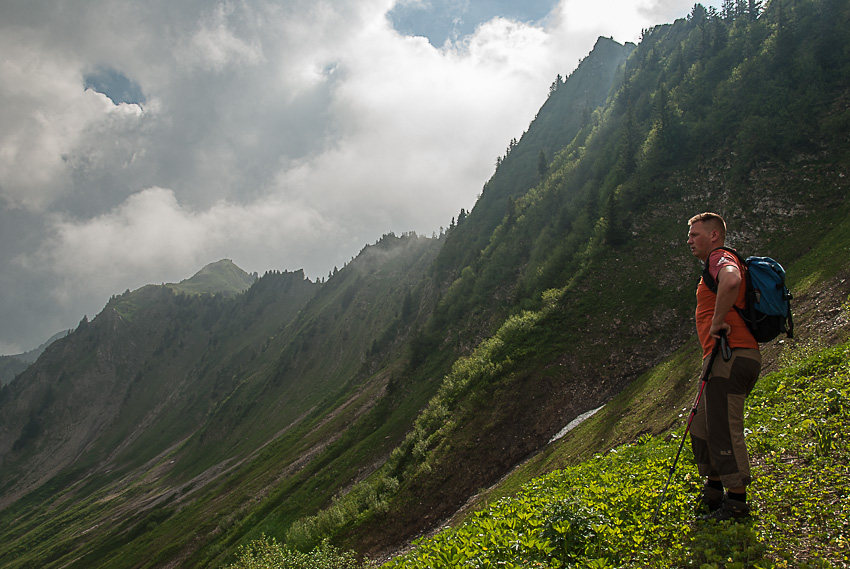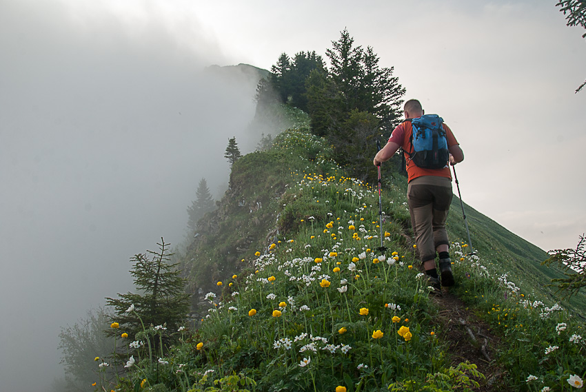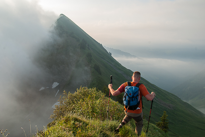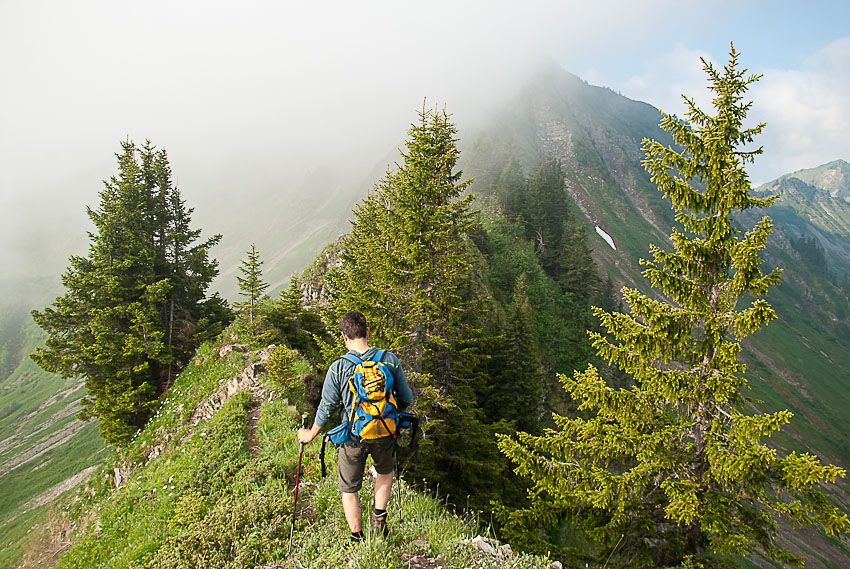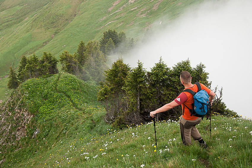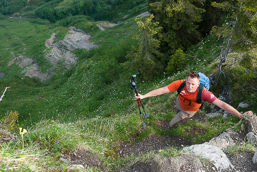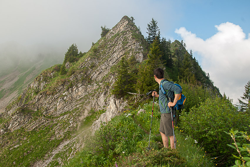 Steiler Abstieg vom Pfrondhorn
