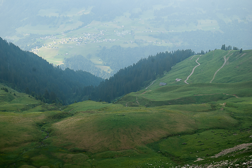Blick hinab zur Alpe Böda