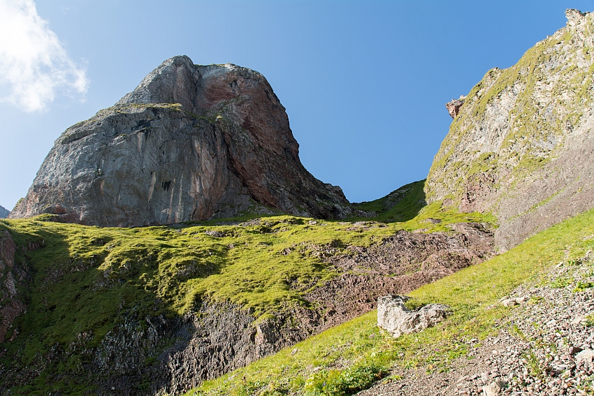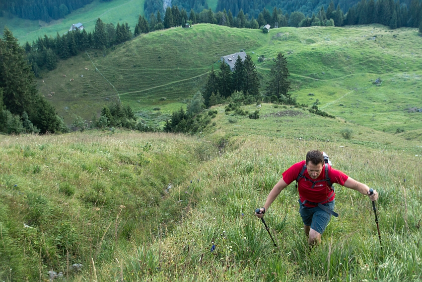 Nach Studium des AV-Führers war schnell klar, dass es wohl nur links über die freien Grashänge weiter empor gehen konnte