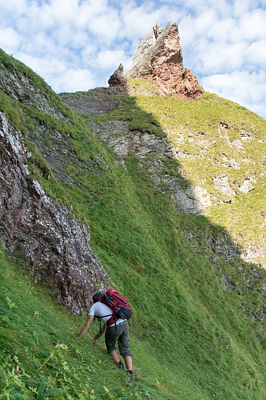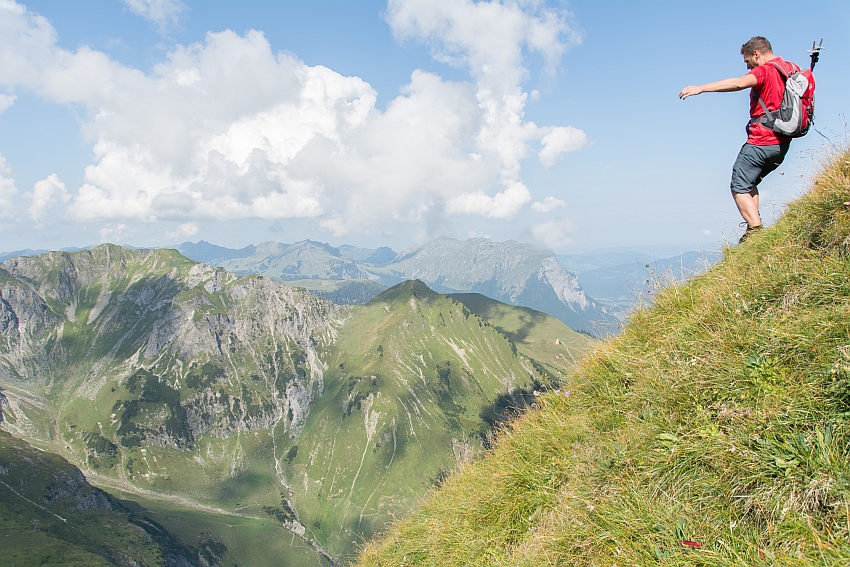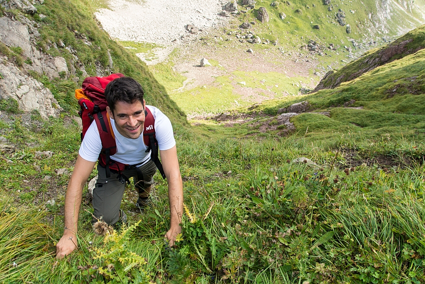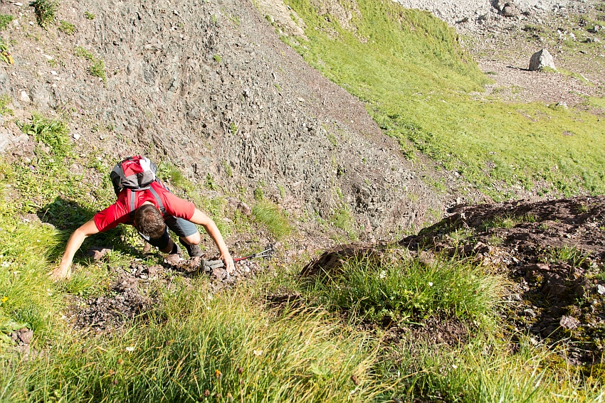 ...denn der steile Grat oder alternativ der daneben hinab führende Grashang erfordern nochmals volle Konzentration