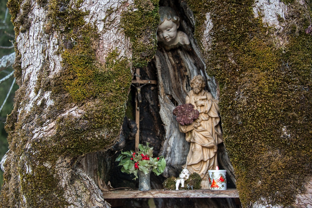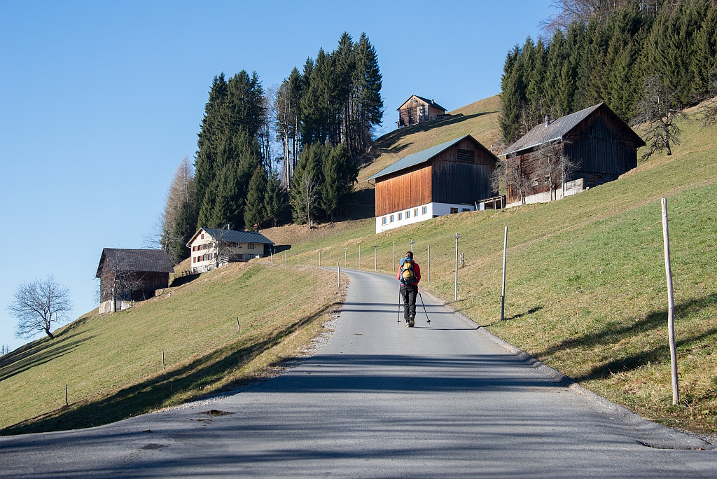 Über einen mäßig steilen Weg gehts von der Kirche in mehreren Schleifen zur Parzelle Oberrain