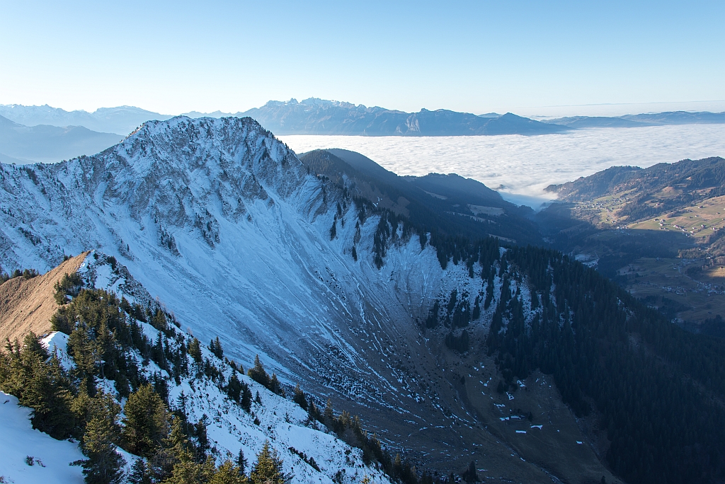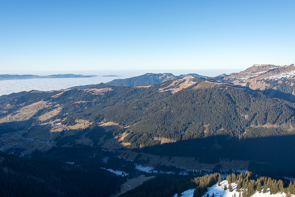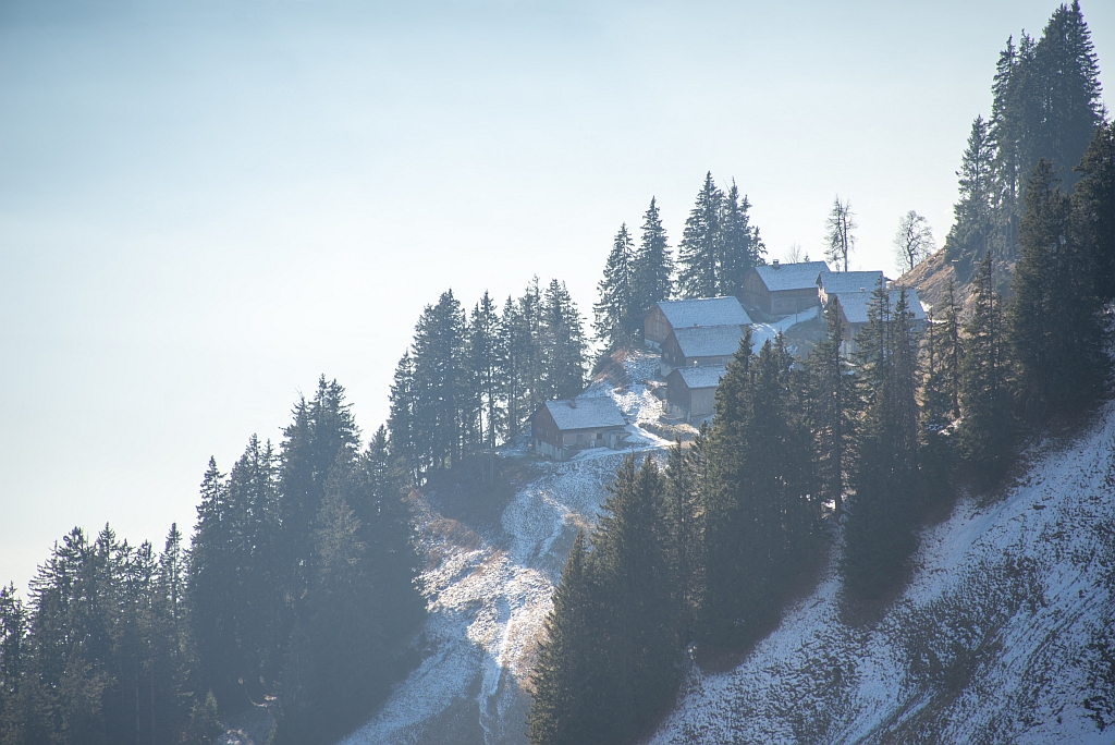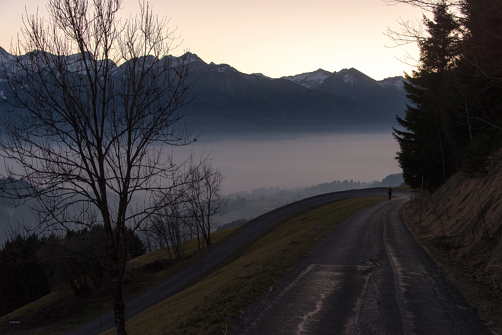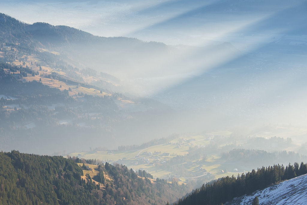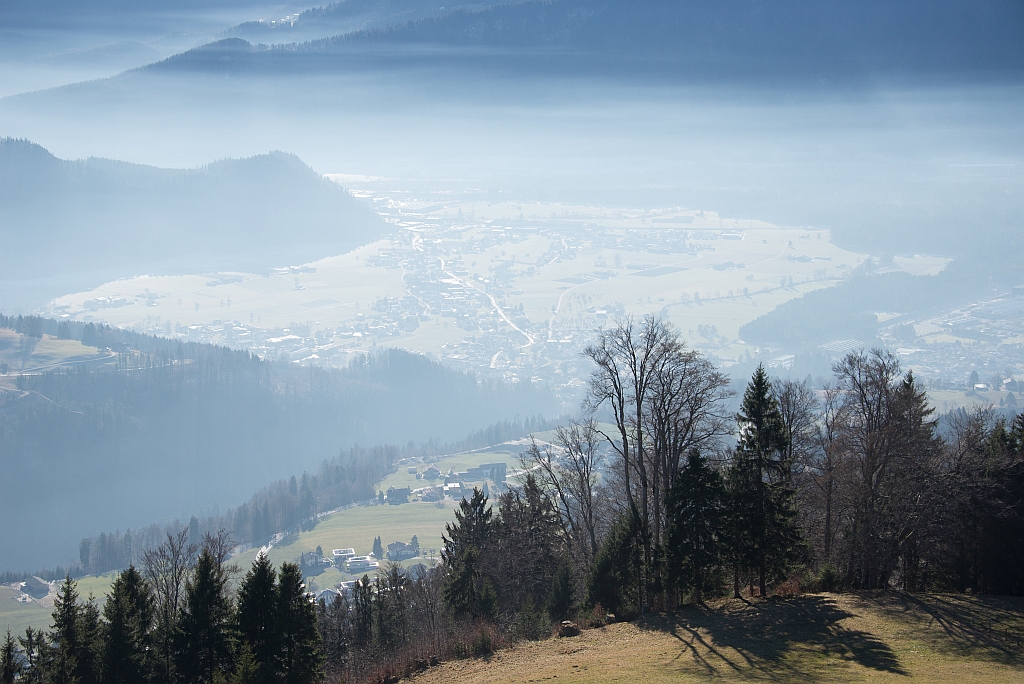 Im Tal hält sich hartnäckig eine dünne Dunstschicht