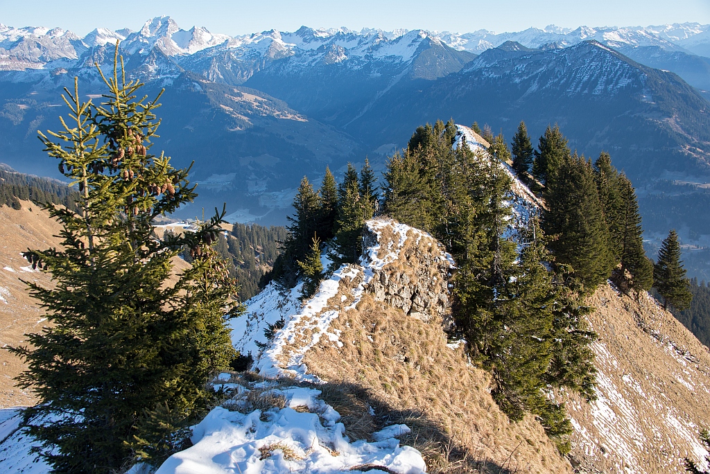 | Angetroffene Verhältnisse: | Grat zum Teil bedeckt mit hartem Schnee, daher erhöhte Vorsicht |