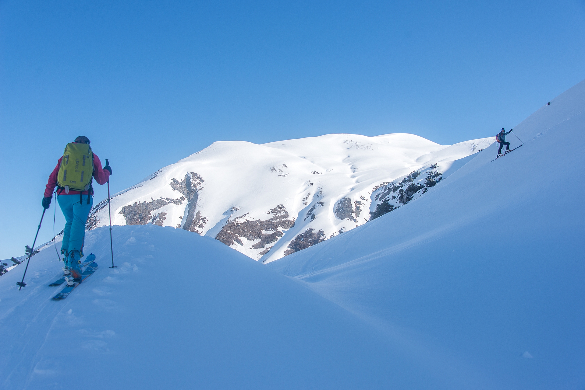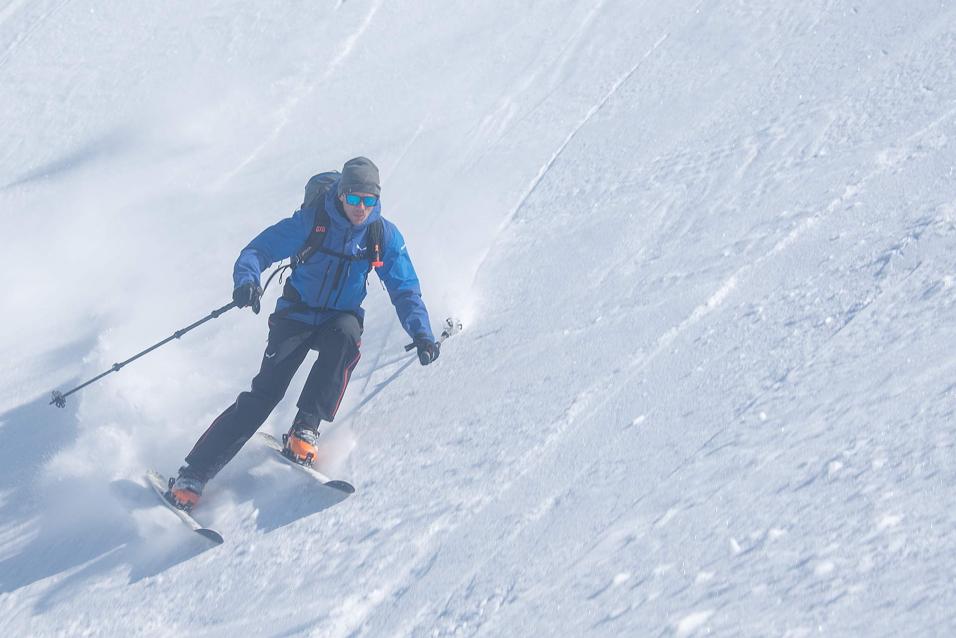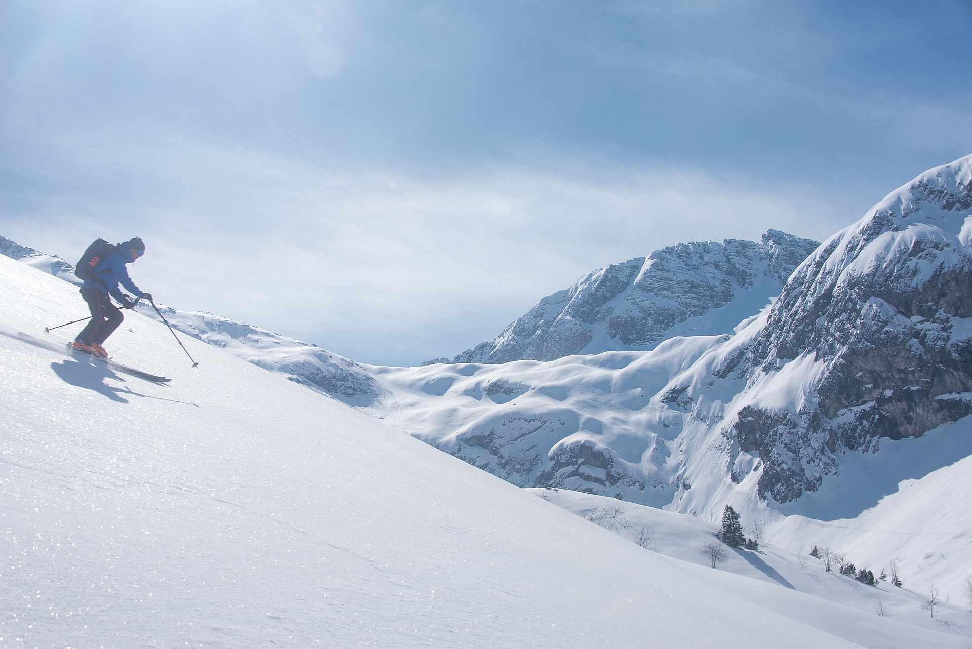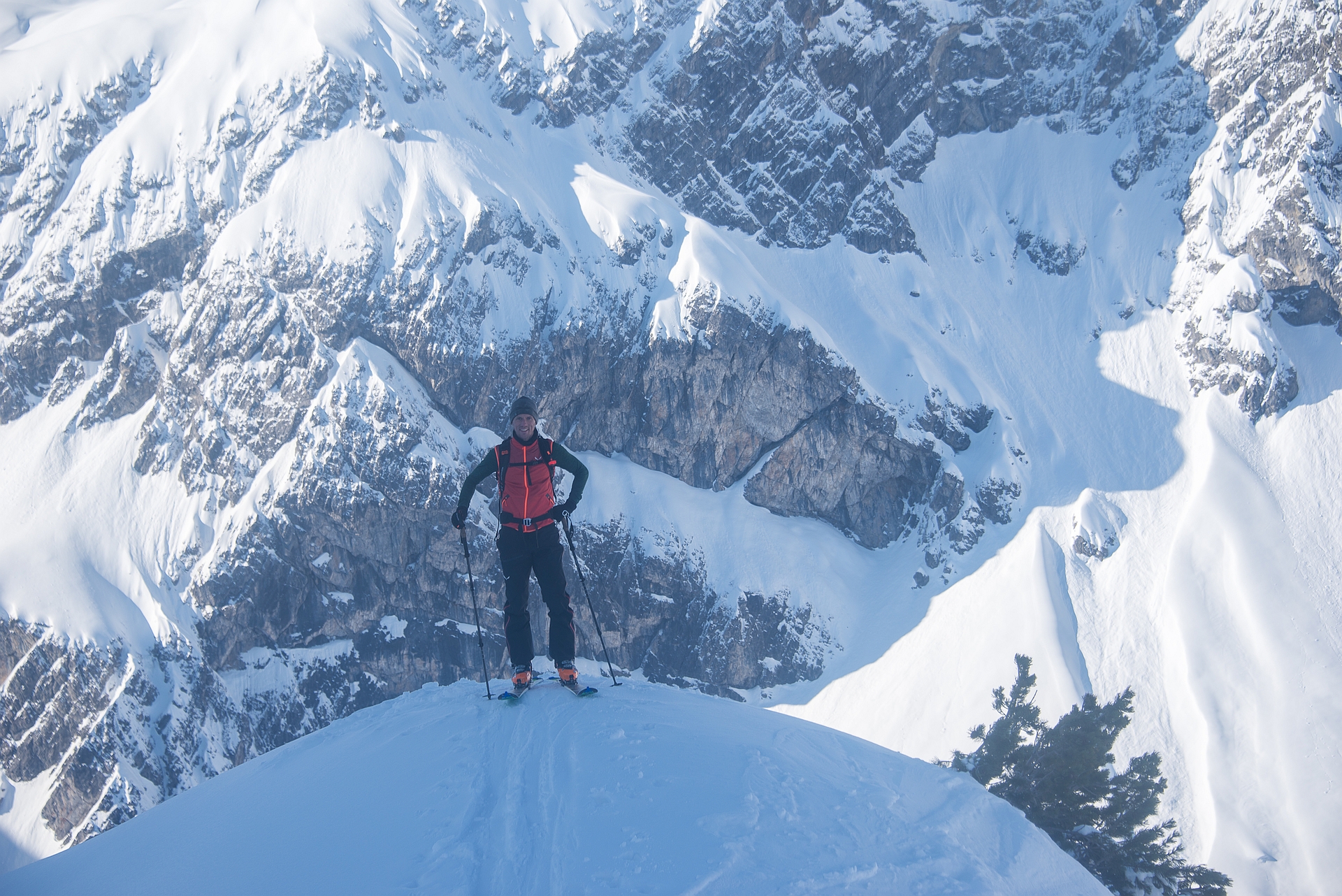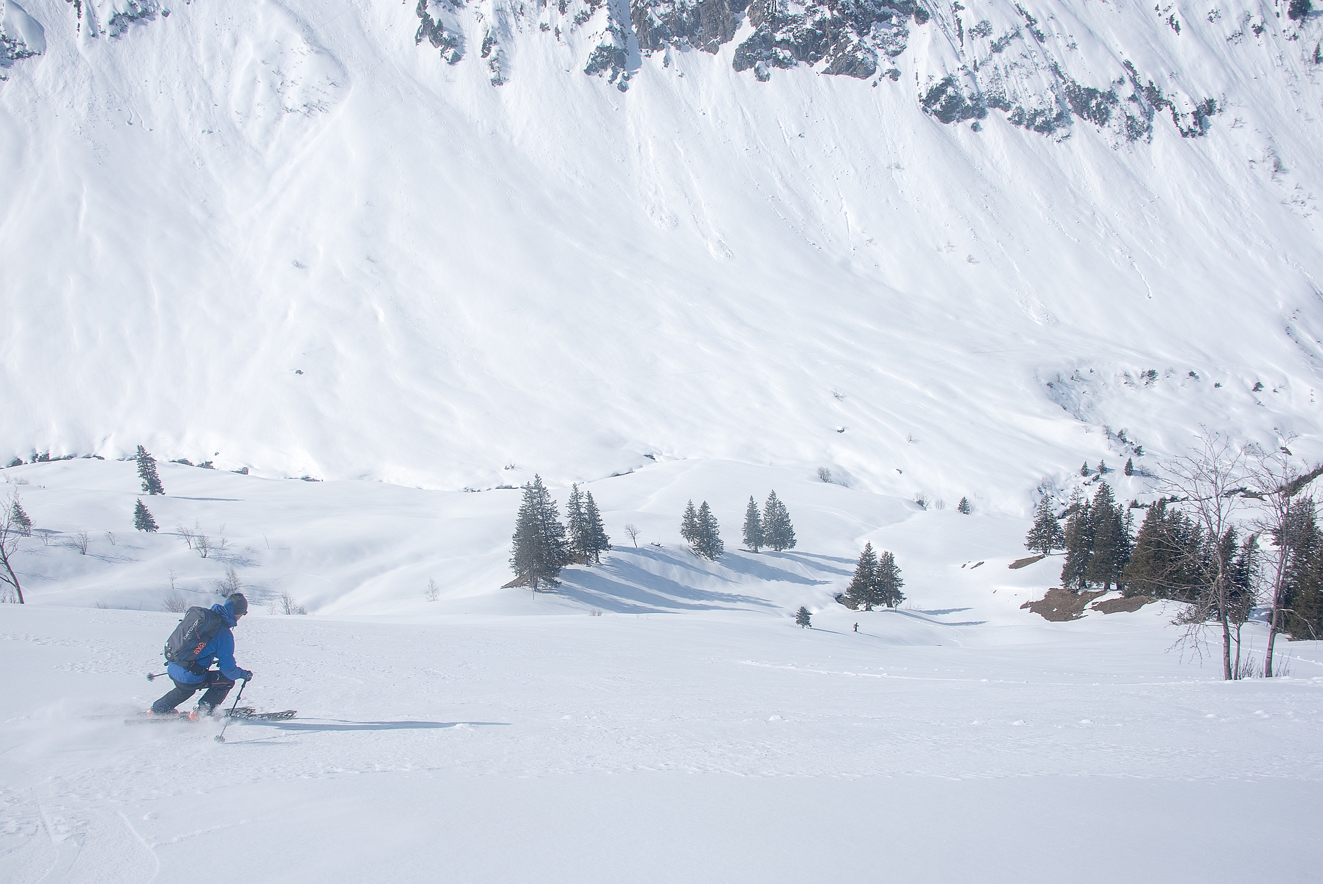Danach mit Volldampf hinein in den leider nur leicht aufgefirnten Steilhang