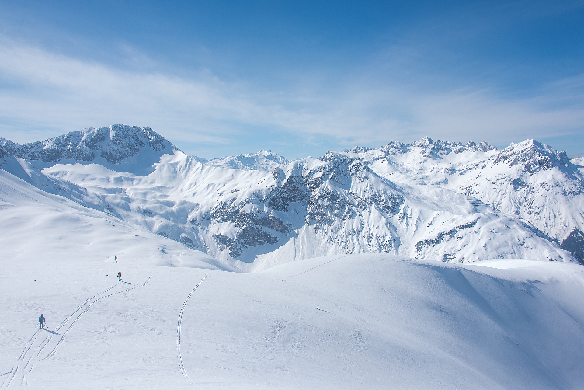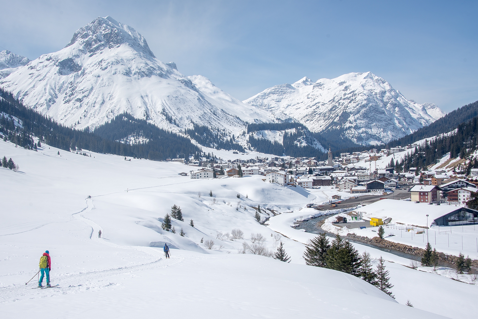 Am Fuße dieser Berge unser Ausgangspunkt, der Nobelskiort Lech am Arlberg