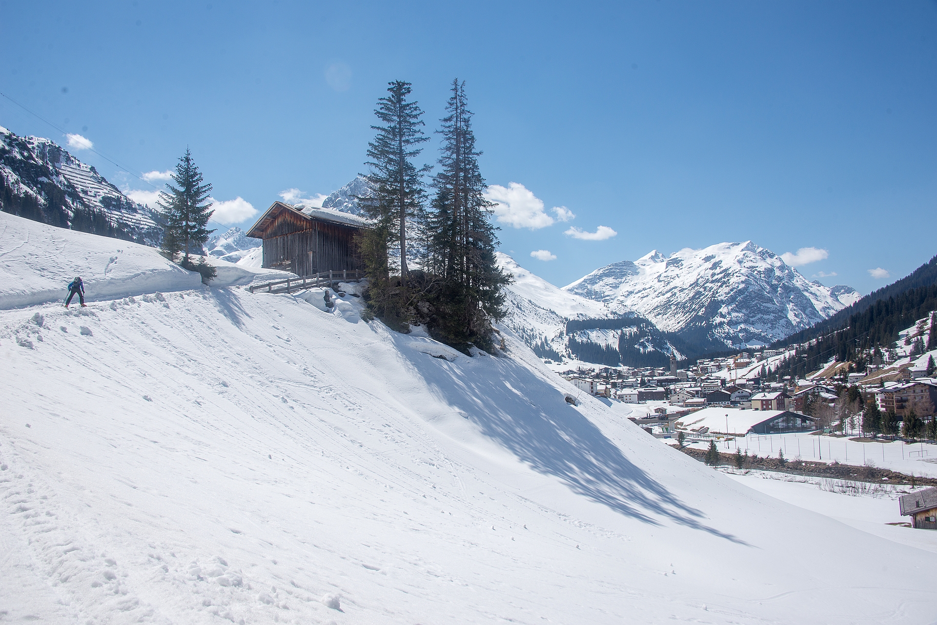 | Routenbeschreibung: | Vom Parkplatz bei der Schlosskopfbahn der markierten Skiroute dem Walkerbach entlang in das Wöstertäli bis zur Tälialpe. Über den Steilhang zum Wöstersattel. Von dort die steilen Hänge (Achtung Lawinengefahr) unterhalb der Wösterspitzen querend zum Kamm nördlich des Bockbergsattels. Abfahrt hinab ins Ochsengümple und von dort die ostseitig Hänge hinauf zum Monzabonjoch und weiter hinauf zum Rüfikopf. Nach kurzer Abfahrt Richtung Norden über die steile Rinne "Langer Zug" hinab ins Wöstertäli und von dort wieder zurück nach Lech |